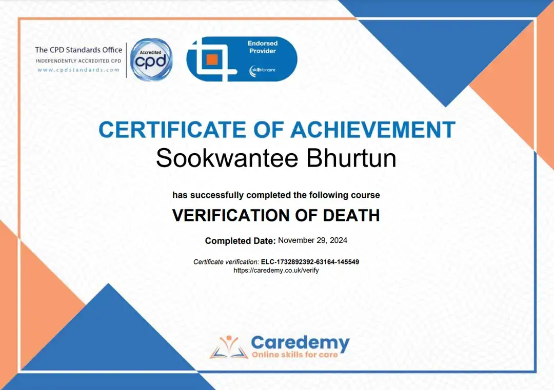 Maintain rigorous compliance with CQC standards and industry regulations through our CPD-accredited complex care training. Access specialised modules instantly—covering everything from brain injury to oxygen therapy to suctioning —all delivered through flexible, self-directed learning. Upon completion, receive a formal certificate to validate your competency and commitment to the highest standards of person-centered care in the UK.