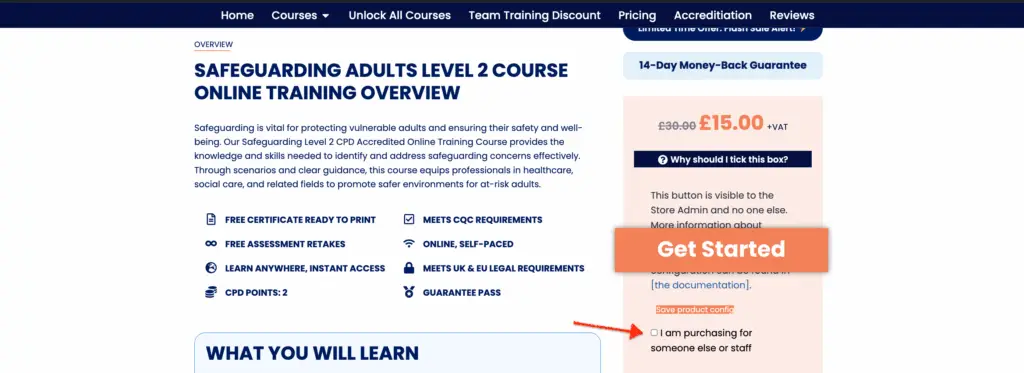 Note: If adding a different course, click the continue shopping button. Tick the same box when purchasing for staff.